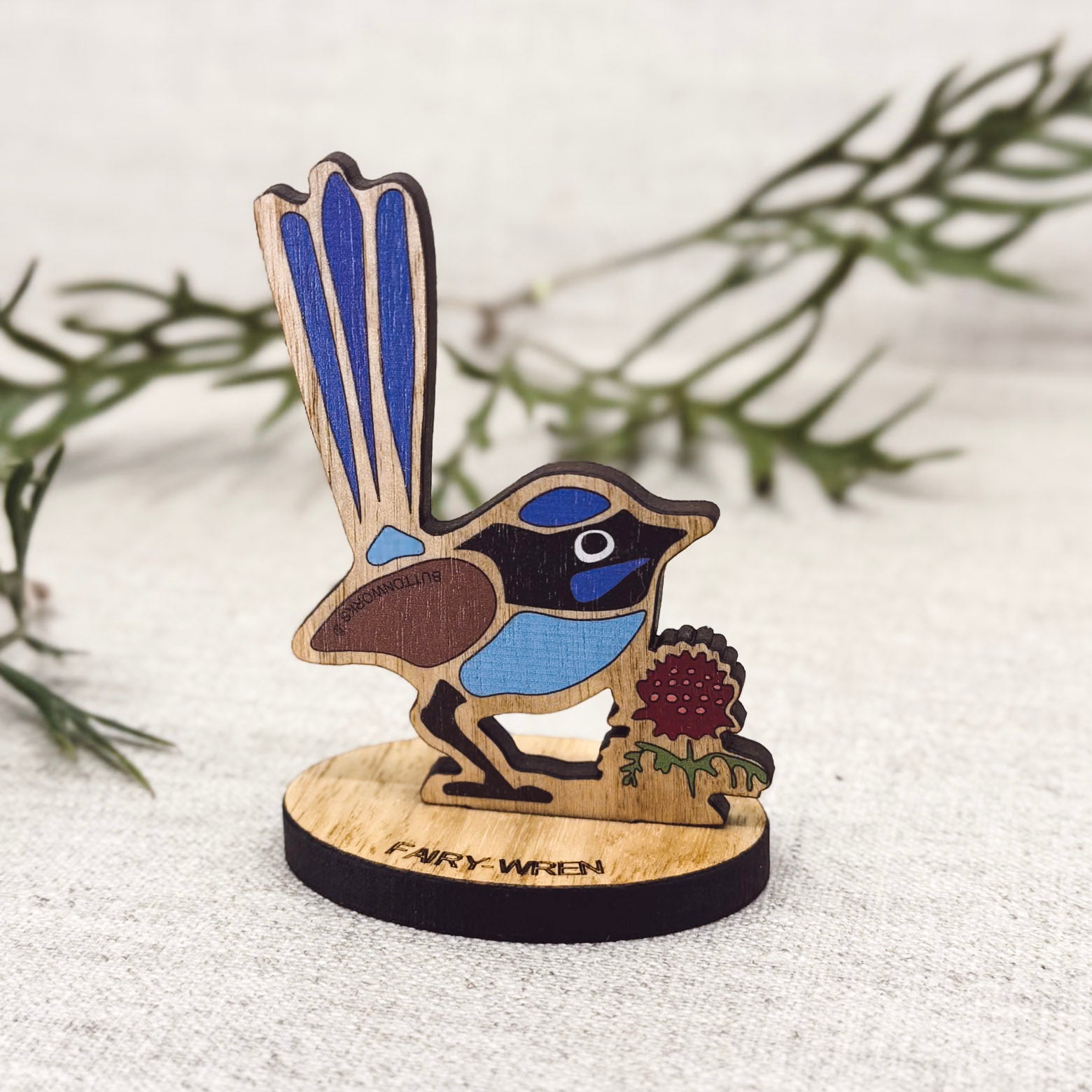 Standing sculptural figurines. Each figure is made from sustainably sourced Australian timber and comes packaged in a recycled card box. Every tree is different, therefore the colour and grain of timber varies, making each of our products unique. The real work has been done by the tree, Buttonworks have added the craftwork.